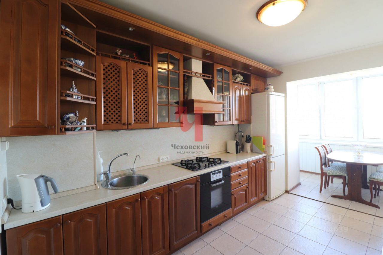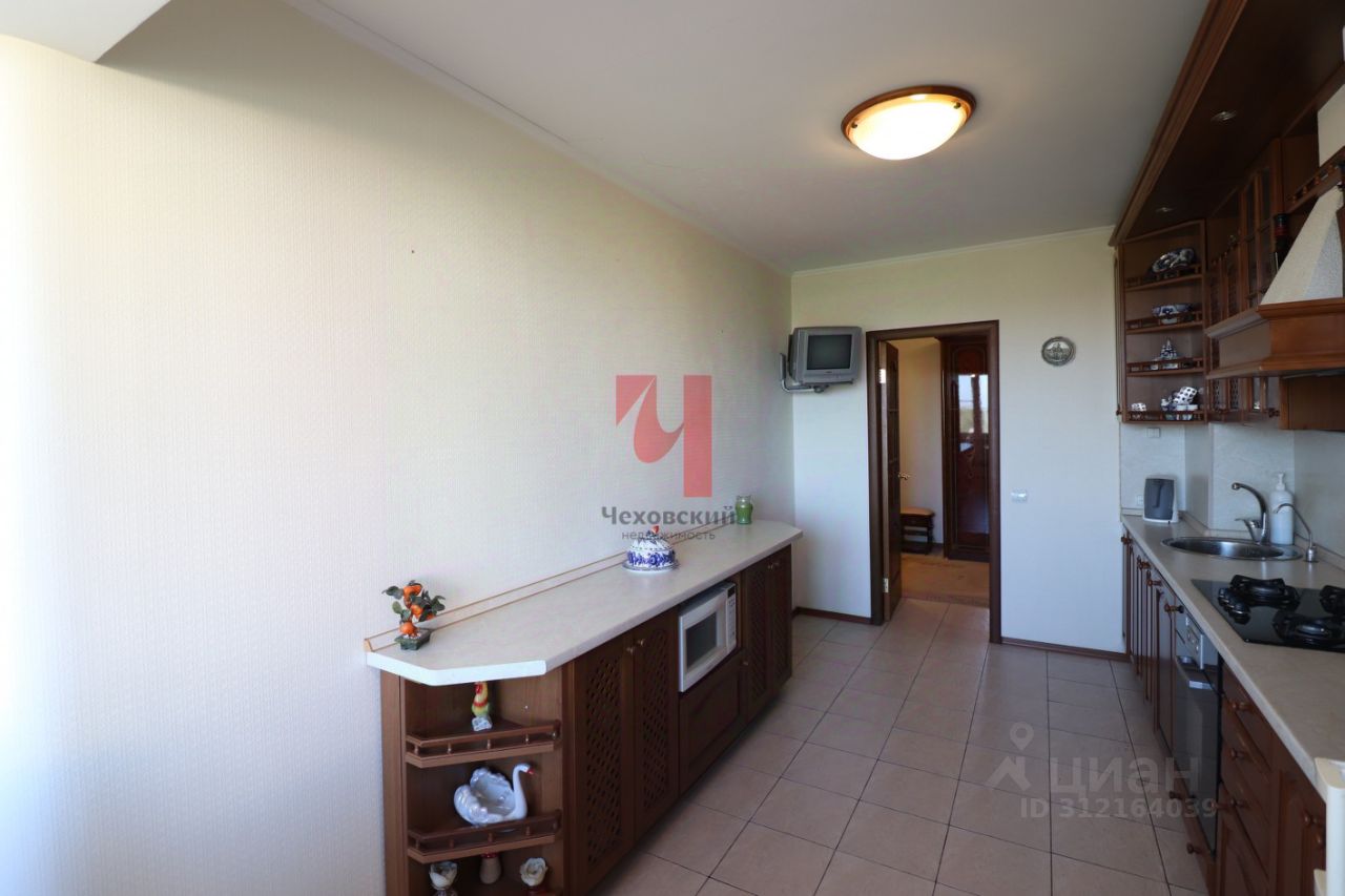 Квартира состоит двух спален, гостиной, кухни и совмещённого санузла и гардеробной. Одним из главных преимуществ является вид из окон и распашнаяя планировка с видом на две стороны. Мебель и техника остаётся. Квартира расположена в одном из лучших домов города Голицыно.