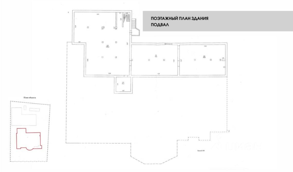 Технические параметры объекта: -4 входные группы с фасада. -площадь по этажам: 1 этаж: 1306 м2, 2 этаж: 830 м2, Подвал: 855 м2.