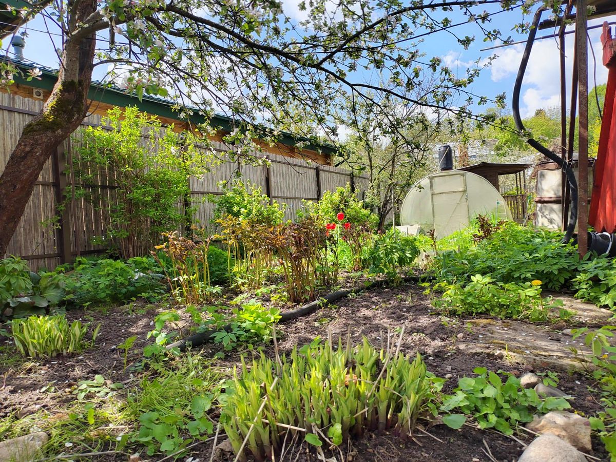 Участок огорожен. На участке: фруктовые и декоратвные деревья и кустарники, цветы. Теплица, колодец, летний душ.