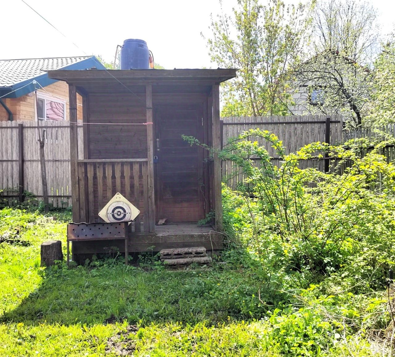Участок огорожен. На участке: фруктовые и декоратвные деревья и кустарники, цветы. Теплица, колодец, летний душ.