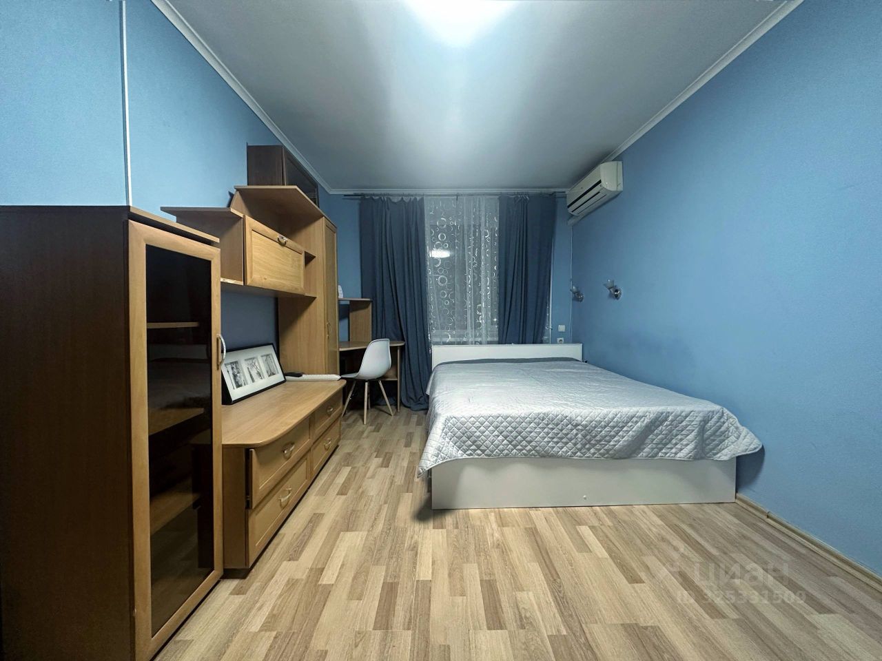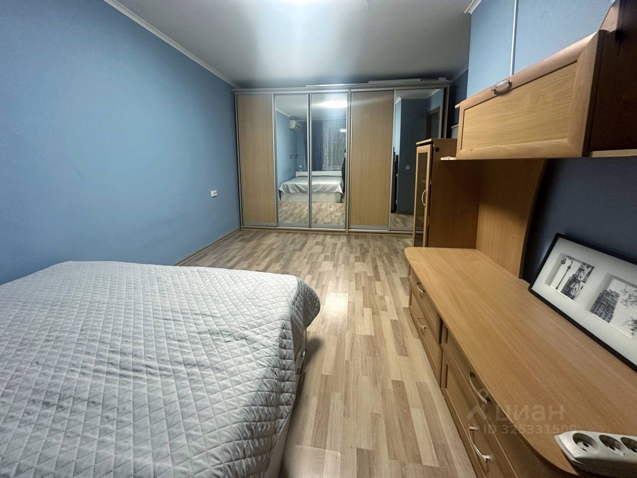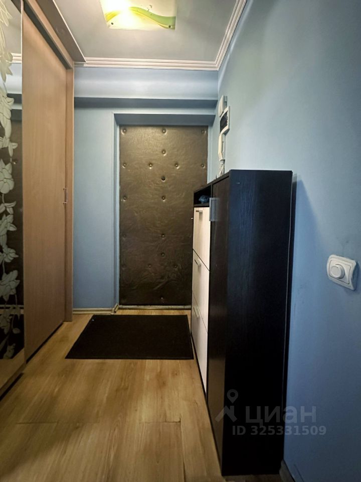 В прихожей установлен вместительный шкаф-купе. В комнате есть удобная кровать и шкафы для хранения вещей.